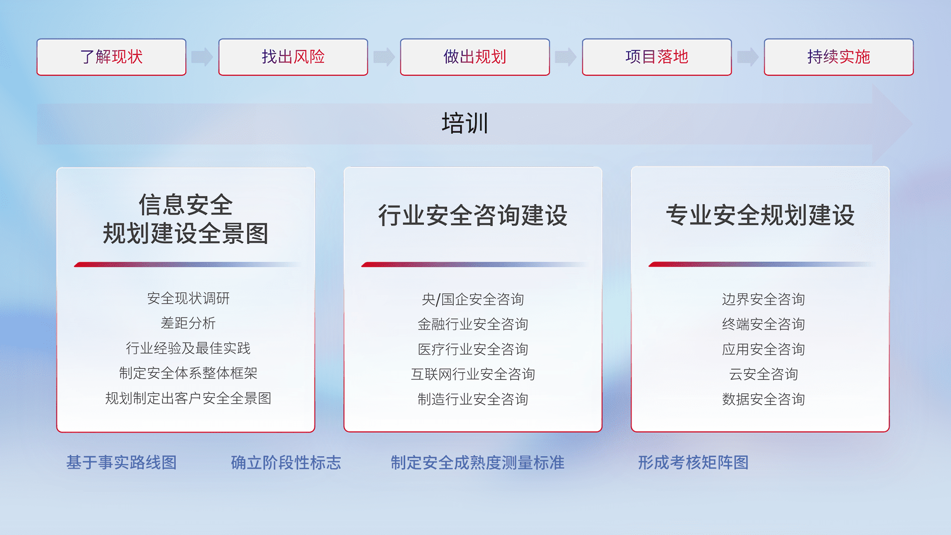 梳理客户信息安全现状调研、、、差距分析结果,,结合行业先进经验及最佳实践,,制订客户的信息安全管控体系总结架构,,,,最终形成一个完整的客户信息安全规划与建设的全景图。。。
