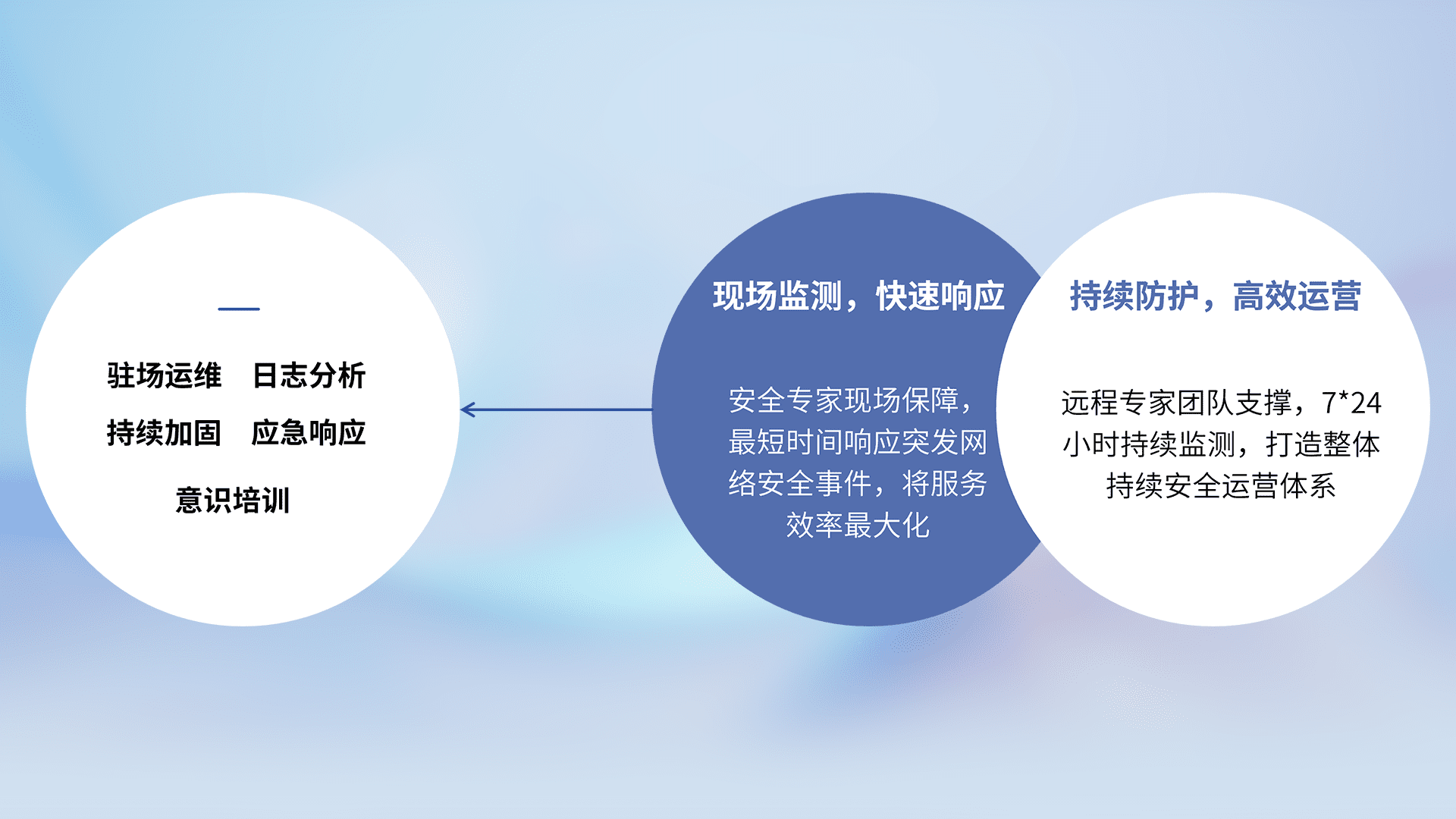 针对客户行业特性,,,提供专属的一站式安全管理服务,,,,帮助客户全面感知网络空间威胁,,通过安全专家的线上、、、线下防护支持,,,,实现风险闭环,,,,将安全保障常态化,,为客户打造常态化安全运维运营服务。。。